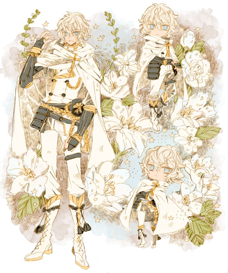 Lucien has a tall and strong build and stands at 6' foot 1 inch. He has platinum blond hair with gentle waves. His eyes are pale blue. He is almost always on-call so he typically wears his knight uniform, a white suit with gold embellishments.Off duty, he usually wears a comfortable white dress shirt and black pants.